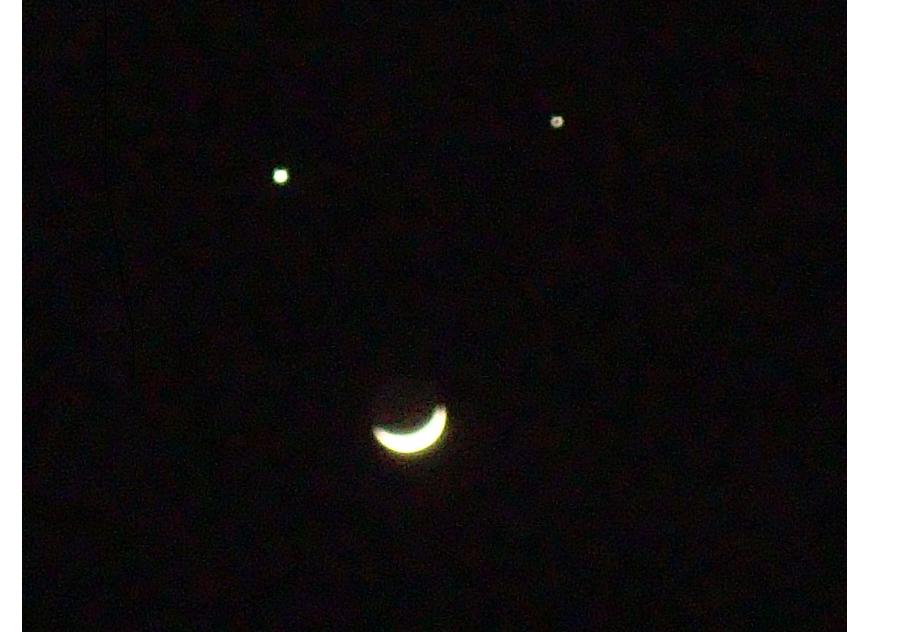 Last night, there was a rare conjunction of Moon, Venus, and Jupiter in the night sky. What a pretty picture it made. I was walking out of the office last night, when I happened to look up and see this –