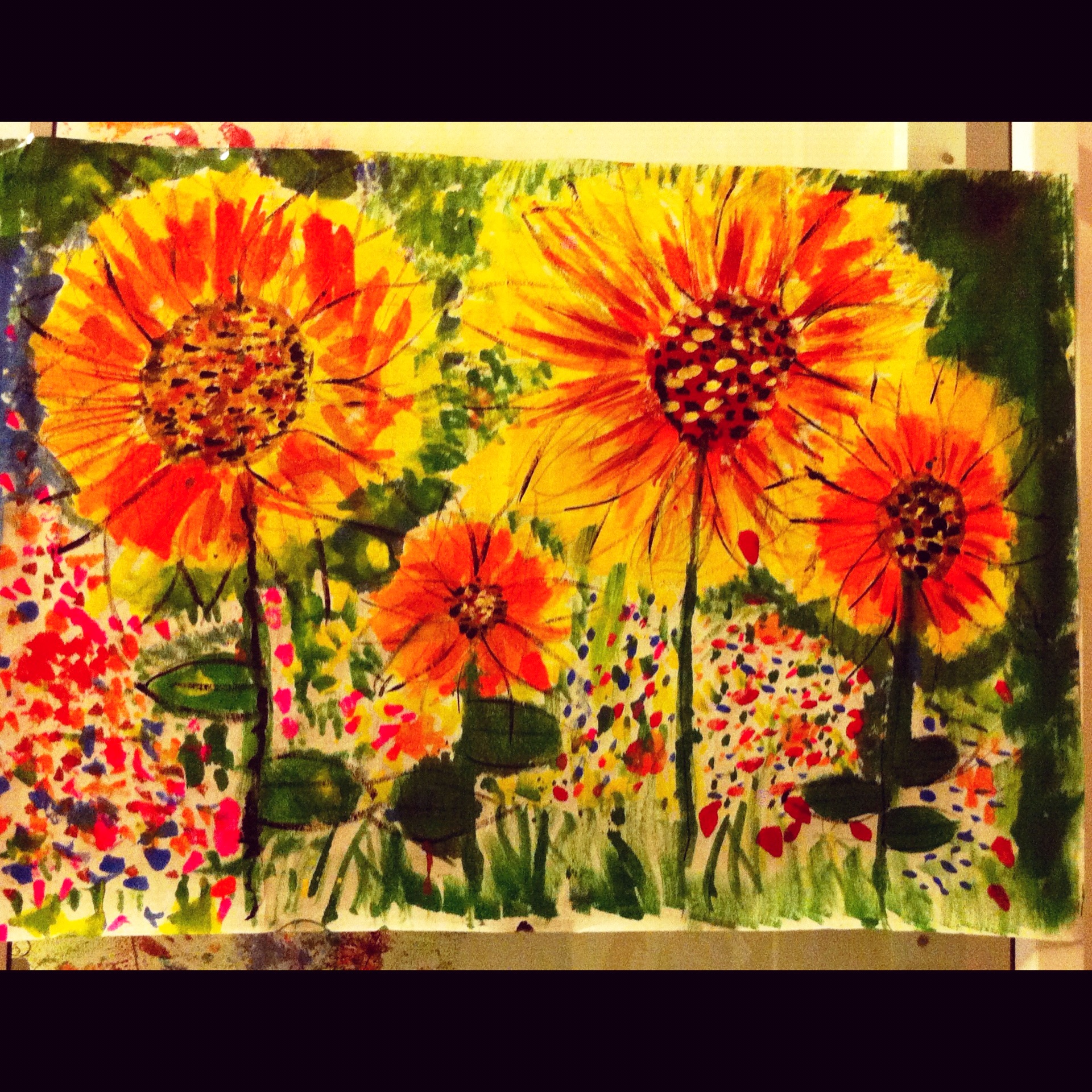 When I saw this amazing painting of sunflowers in Snubnose’s classroom, I just had to take a pic and share here.