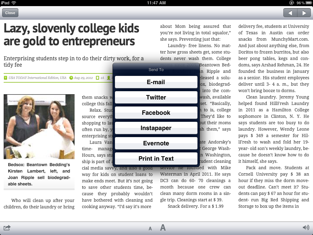 - I am a hard-core newspaper clipper. I cut out favorite newspaper articles all the time and keep for future reference. PressReader offers a virtual option for it too. With a single click, I can save newspaper articles to Evernote or Instapaper. I am beyond thrilled :D.