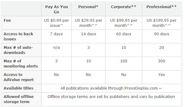 Here’s a screen capture from the PressReader blog. Do visit their blog for more details about their subscription plans and other information on the app.